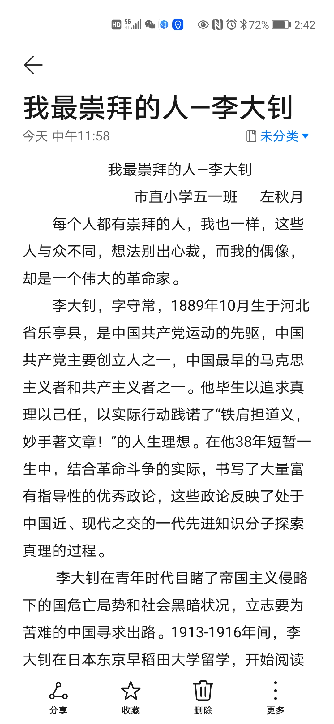 我最崇拜的人—李大钊