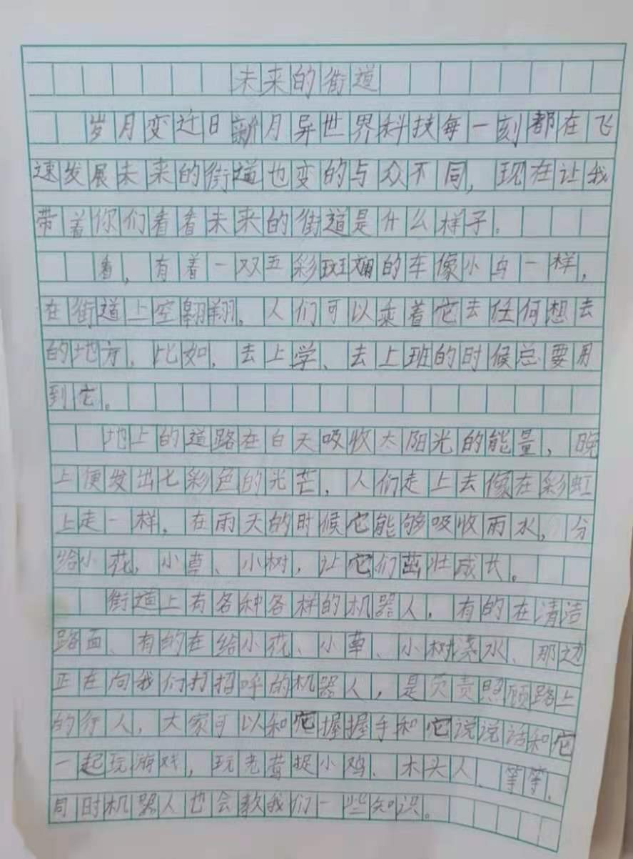 | 你笔下的未来街道,确实很神奇,你的作文充满着各种各样的奇思妙想。希望你继续保持这种大胆的想象和创造,不久的将来,一定会实现。努力掌握科学技术知识,将来世界的主人是你们。未来属于你们! |