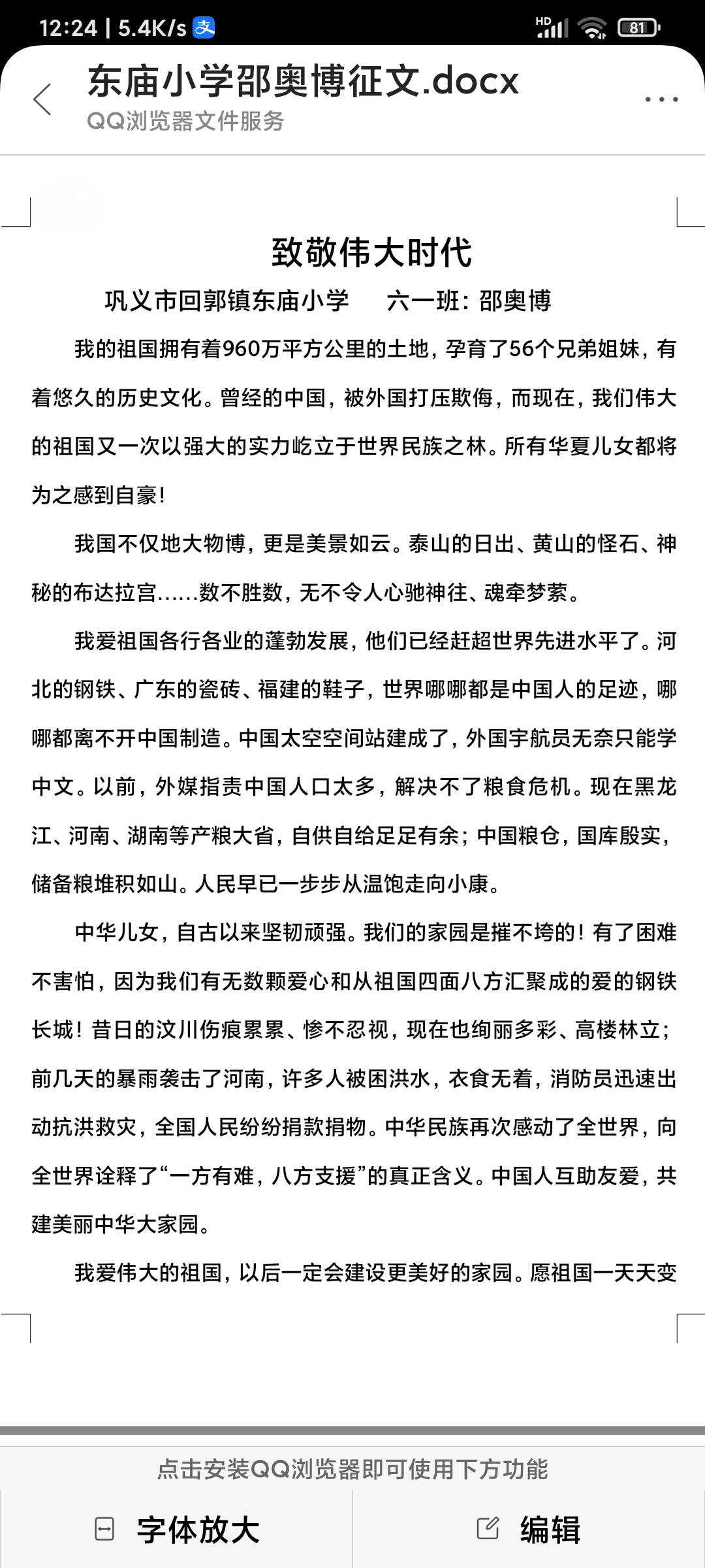 指导老师:贺翠霞 所属学校:巩义市回郭镇东庙小学