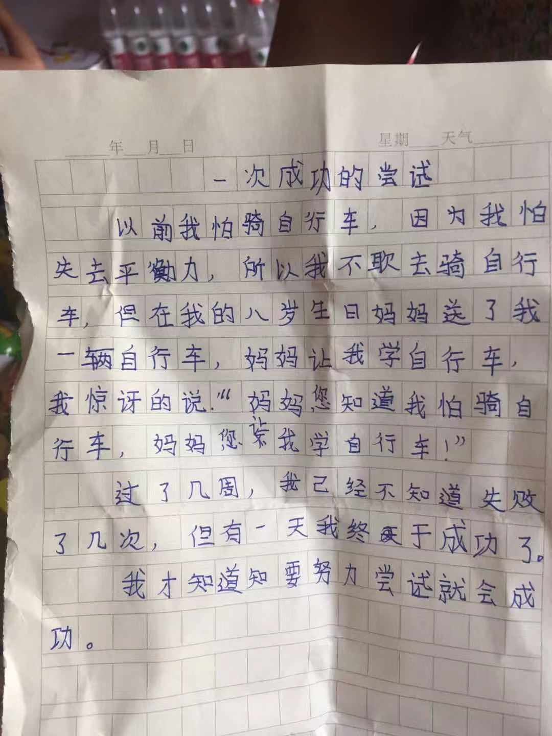 我当时学骑车也是一身汗