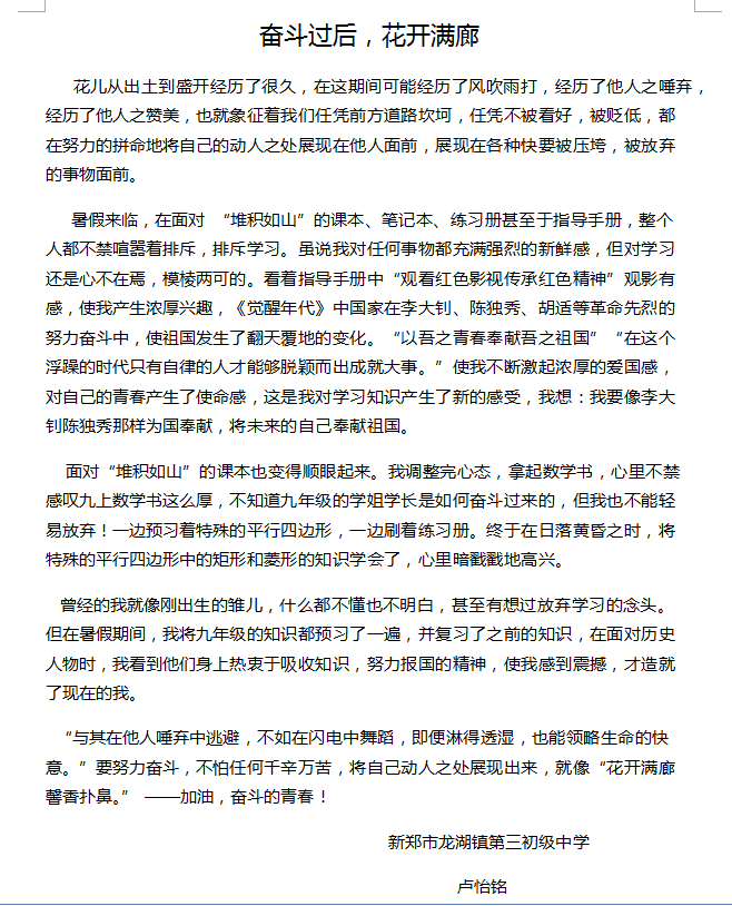 指导老师:杨迪 所属学校:新郑市龙湖镇第三初级中学