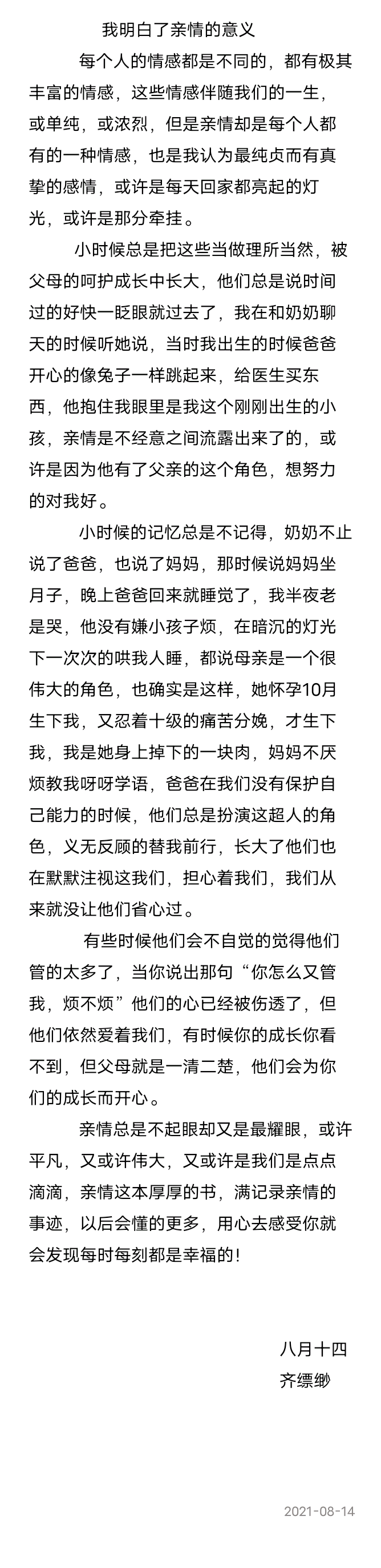 我明白了亲情的意义