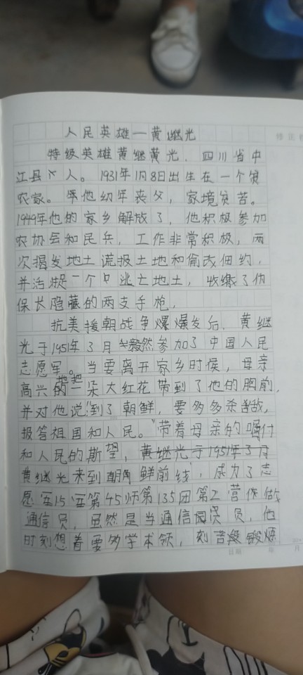 我最崇拜的人--黄继光