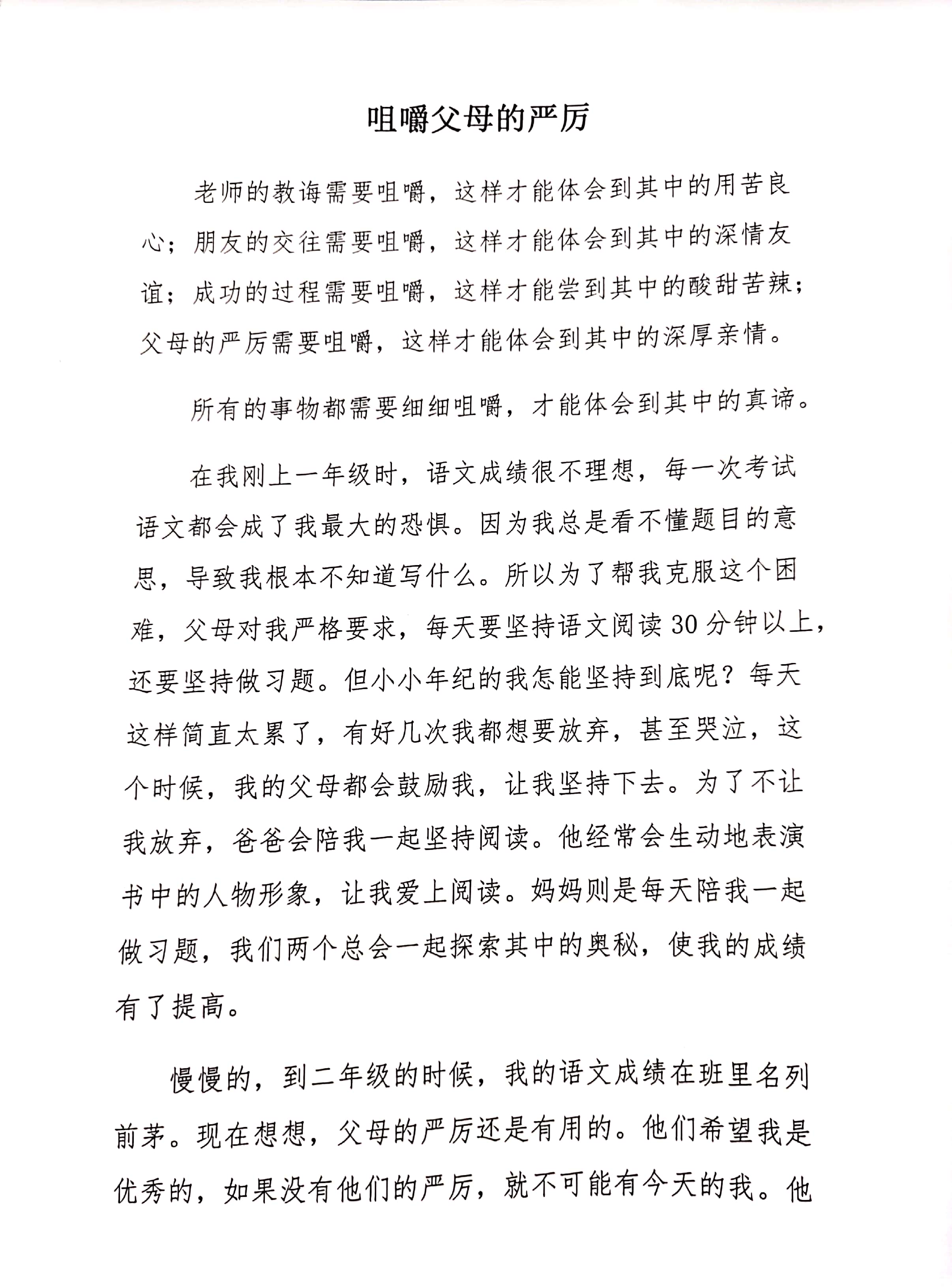 咀嚼父母的严厉