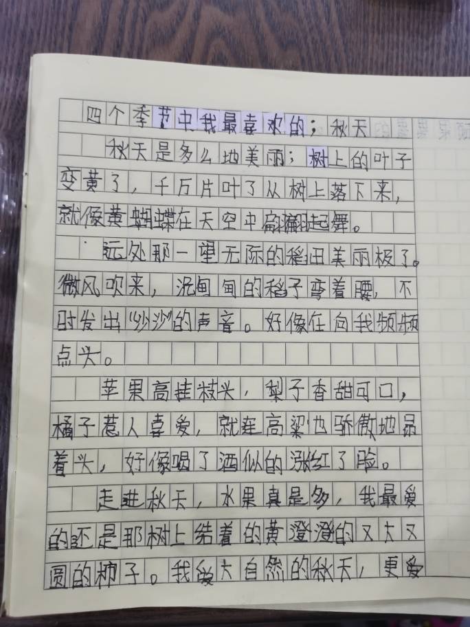 四个季节中我最喜的;秋天