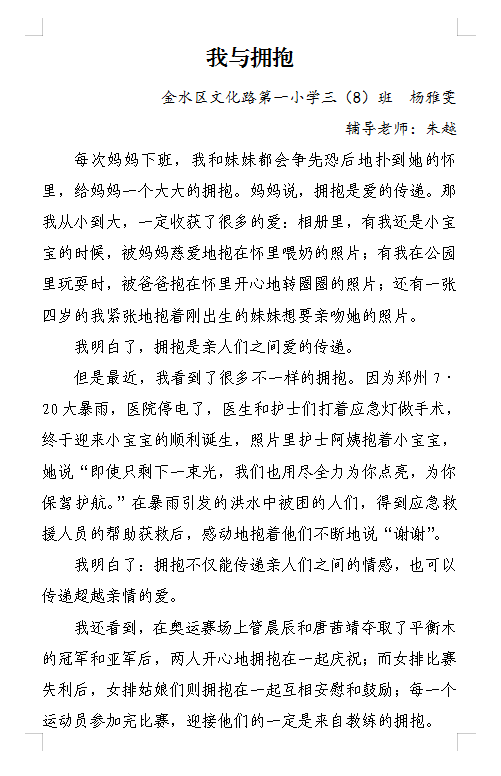 指导老师:朱越 所属学校:金水区文化路第一小学