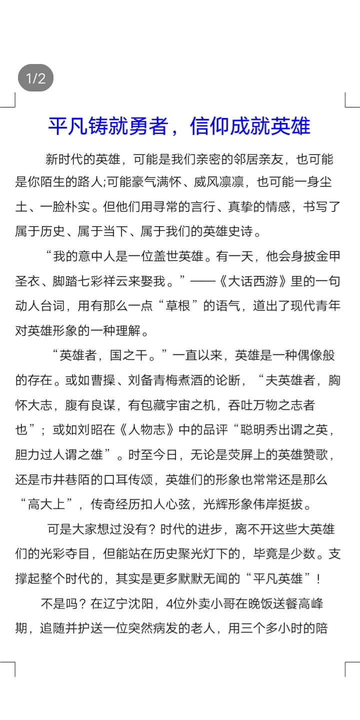平凡铸就勇者,信仰成就英雄