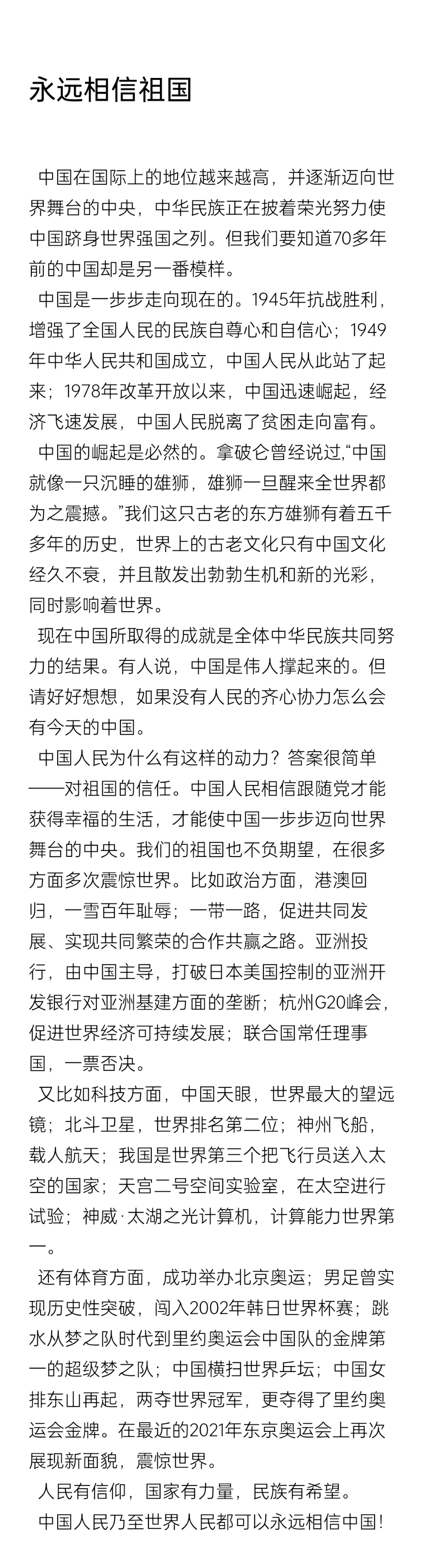 永远相信祖国