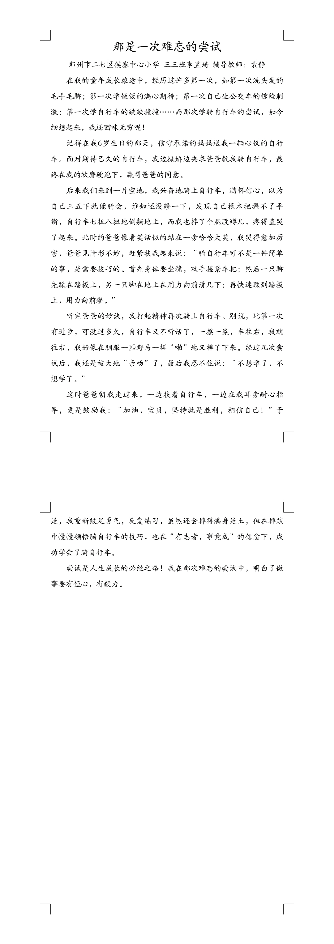 指导老师:袁静 所属学校:郑州市二七区侯砦小学