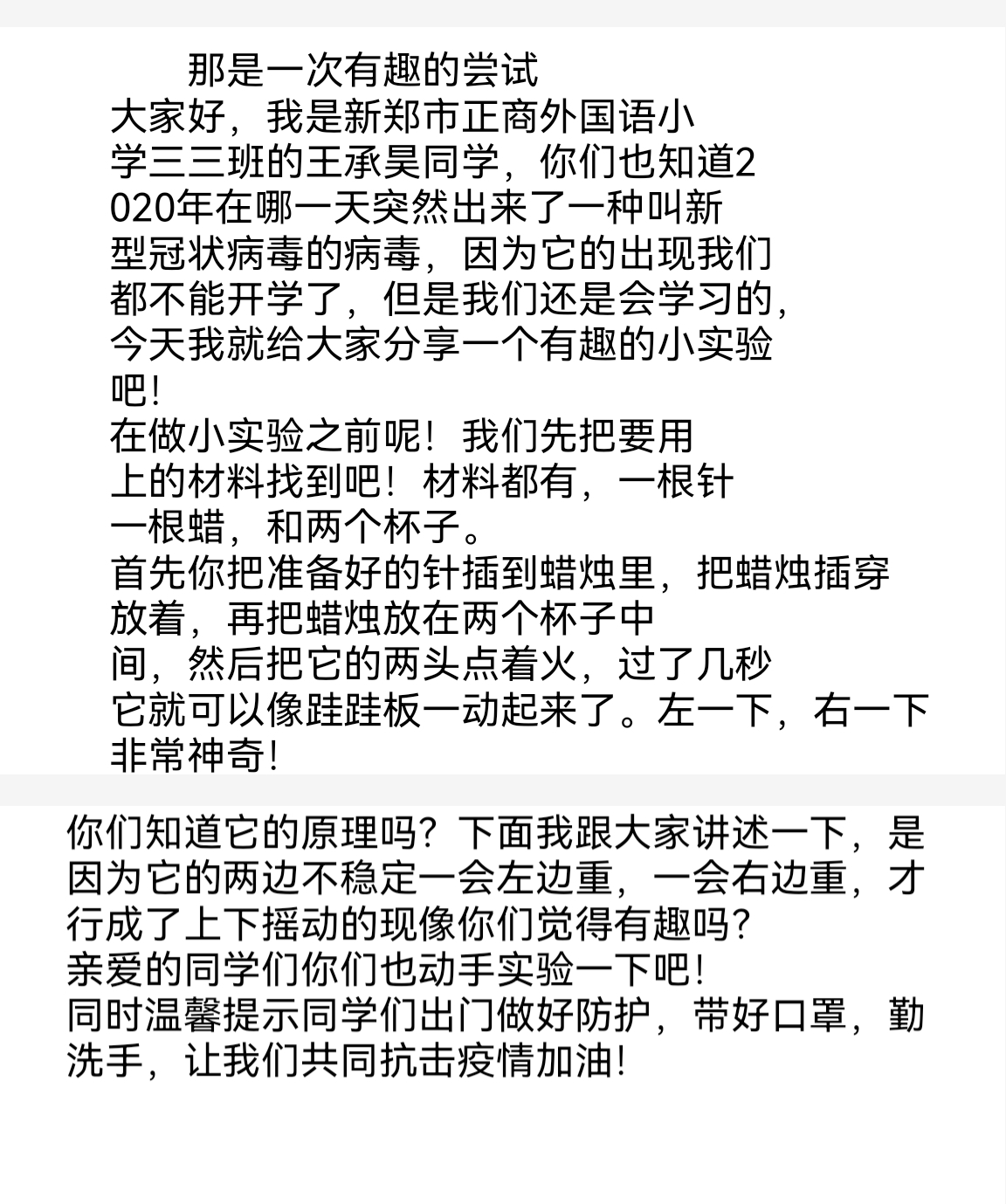 指导老师:刘莉 所属学校:新郑市正商外国语小学
