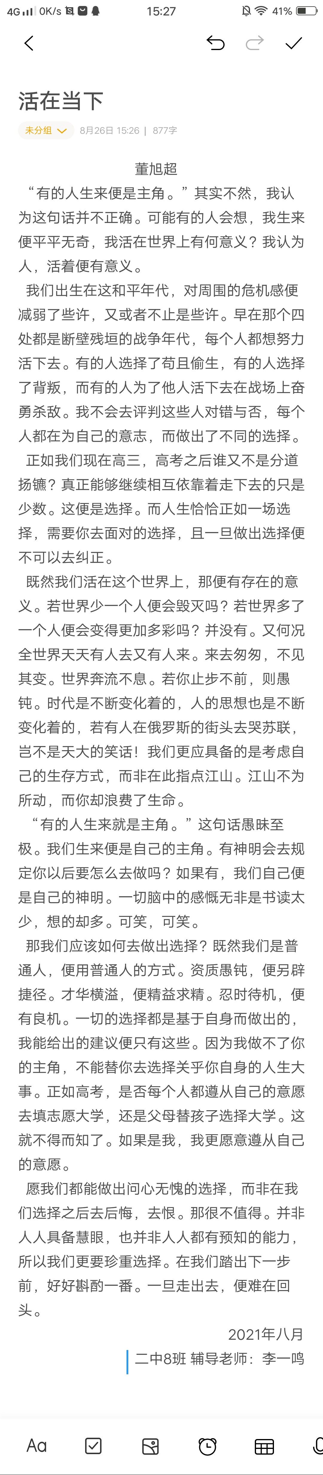 以下区域为指导老师点评区域,若您无法点评,请先核对此作文的指导老师名称与您的账户真实名称是否相同。