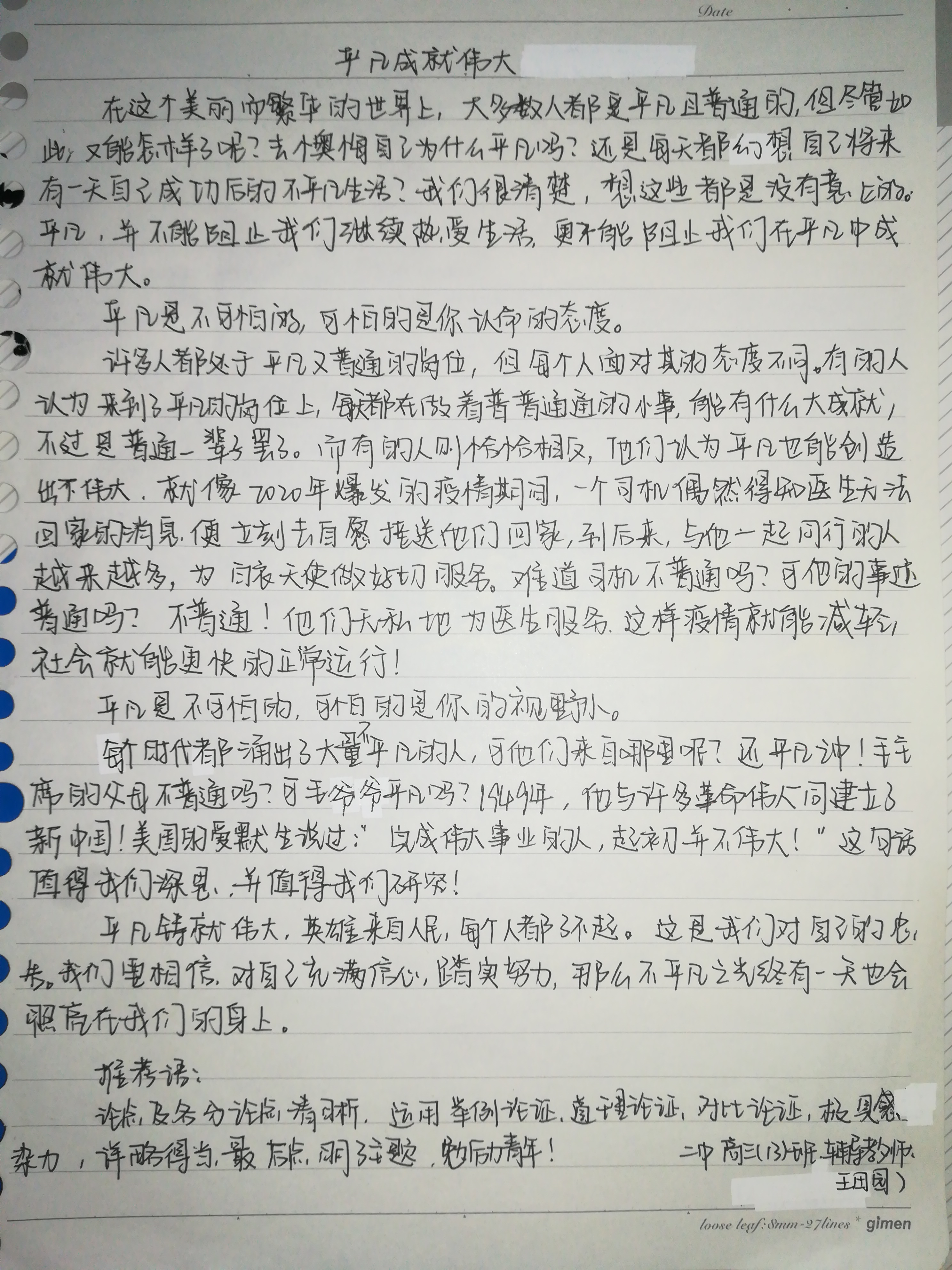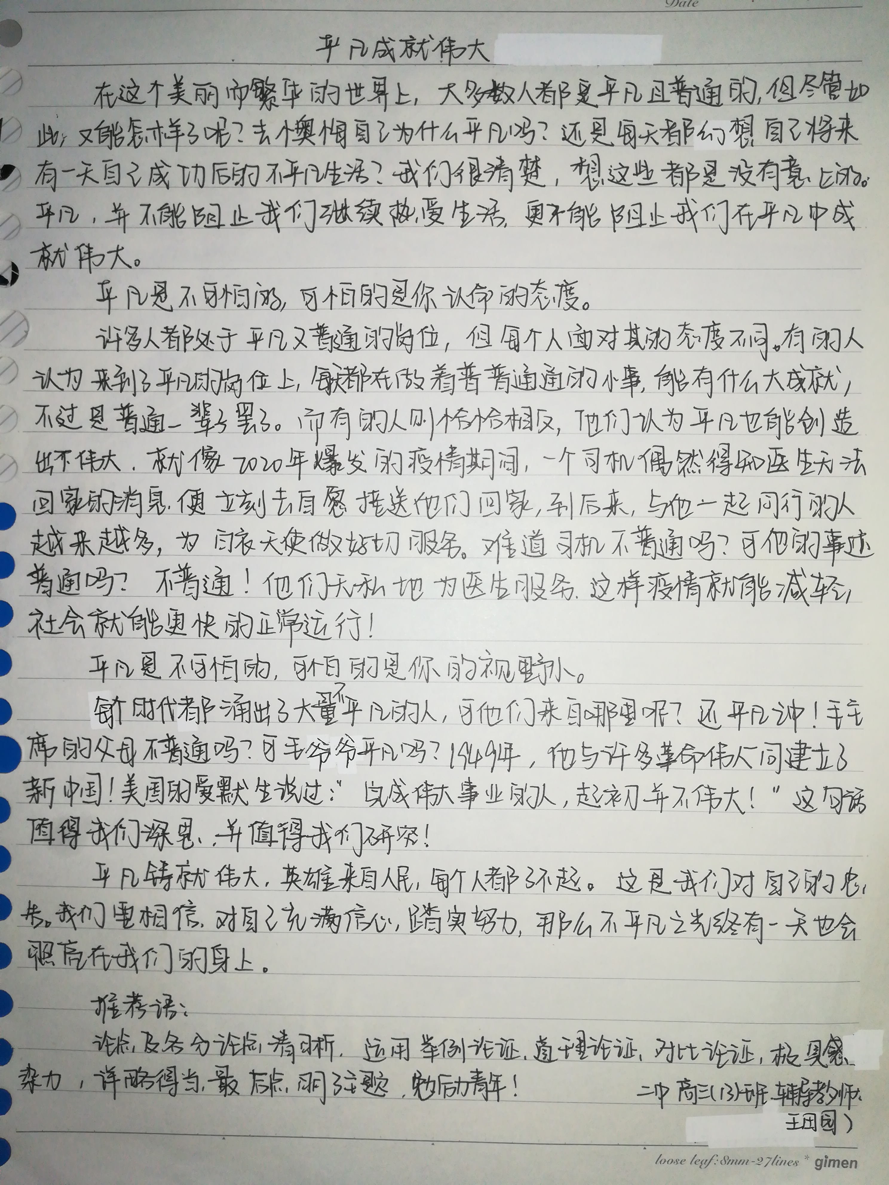 以下区域为指导老师点评区域,若您无法点评,请先核对此作文的指导老师名称与您的账户真实名称是否相同。