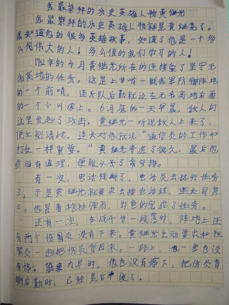 我最崇拜的历史英雄人物黄继光