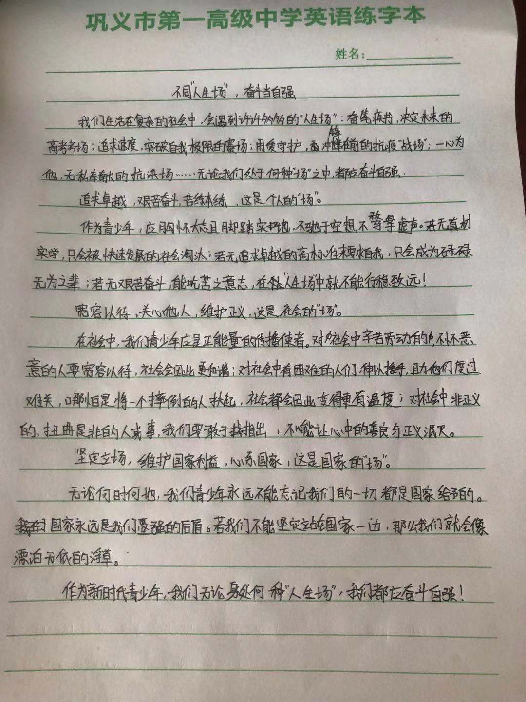 人生不同场,奋斗当自强