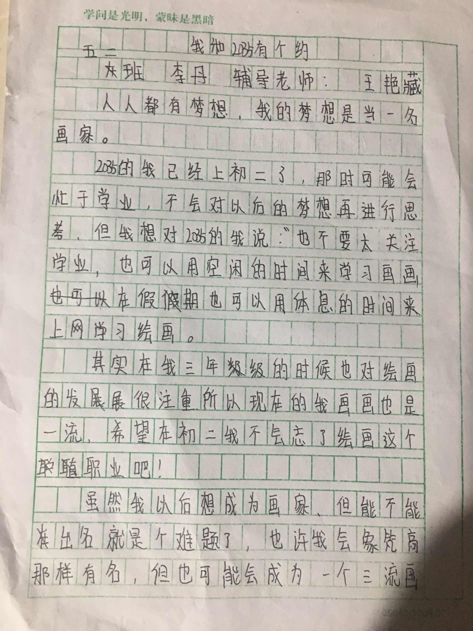 指导老师:王艳藏 所属学校:中牟县平安路学校