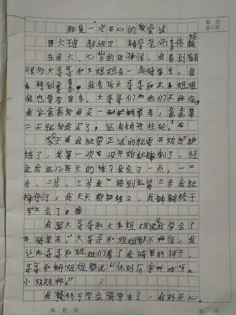 指导老师:李伟玲 所属学校:中牟县平安路学校