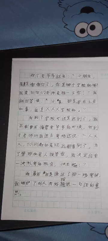 以下区域为指导老师点评区域,若您无法点评,请先核对此作文的指导老师名称与您的账户真实名称是否相同。