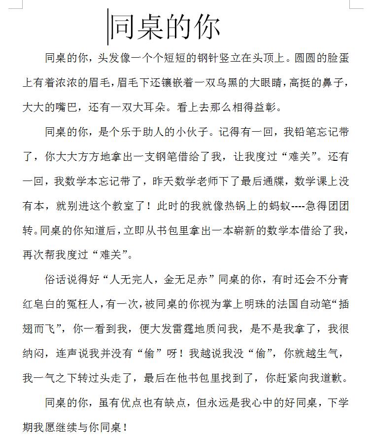 同桌的你 热489 类别:写人 发表时间:2018-08-22 14:32 已有 490 次阅读 指导老师:胡玉肖 所属学校:香山小学