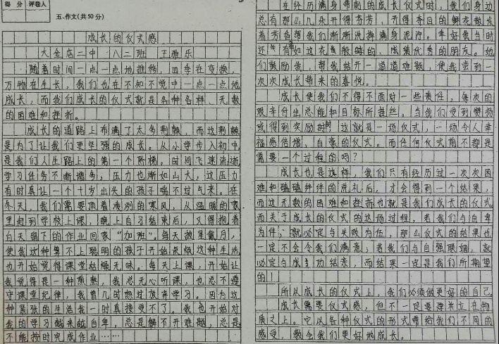 成长的仪式感 热515 类别:其他 发表时间:2018-09-30 19:27 已有 516 次阅读 指导老师:刁习羽 所属学校:登封市大金店镇第二初级中学