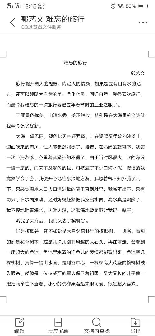 难忘的旅行 热1183 类别:记叙 发表时间:2019-10-14 13:26 已有 1184 次阅读 指导老师:孙同焕 所属学校:滨河第一小学