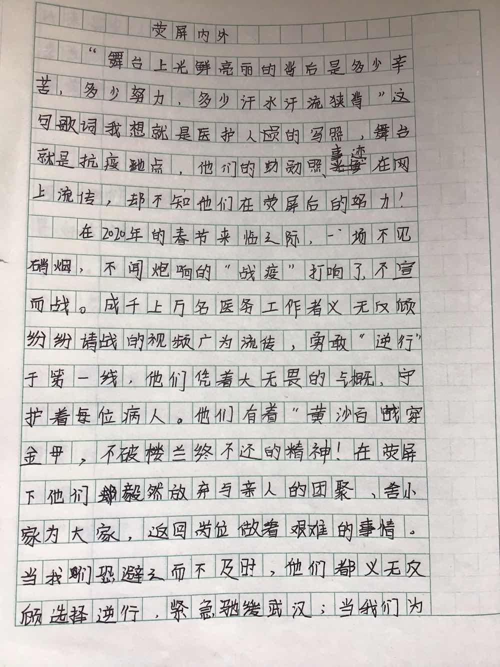 荧屏内外 热555 类别:写人 发表时间:2020-06-07 11:09 已有 556 次阅读 指导老师:慎晓莉 所属学校:西大街初级中学