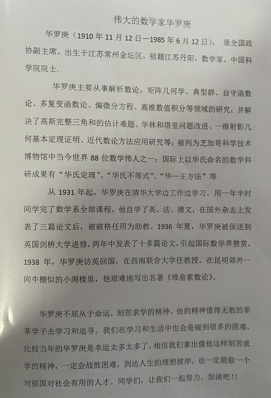 数学家华罗庚 热426 类别:其他 发表时间:2021-07-31 17:01 已有 427 次阅读 指导老师:百赛 所属学校:金水区四月天小学