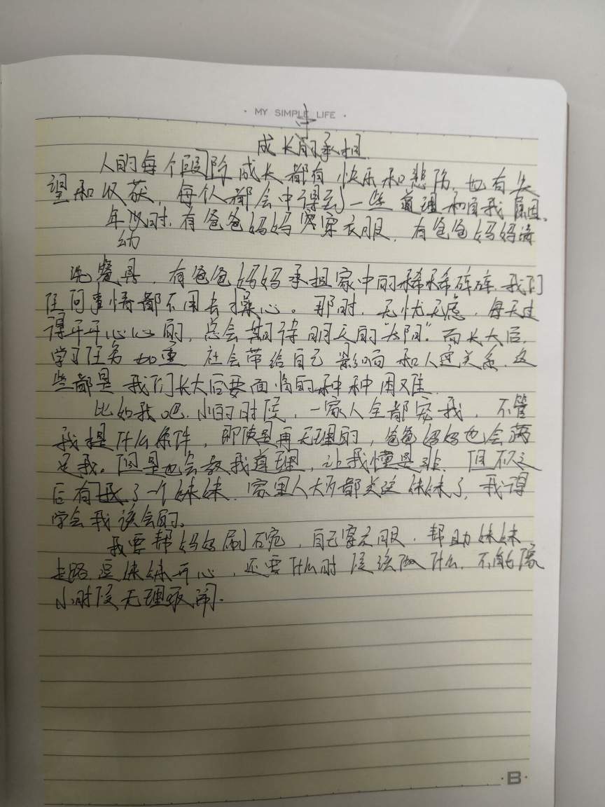 成长中的承担 热258 类别:叙事 发表时间:2021-08-16 22:52 已有 259 次阅读 指导老师:潘老师 所属学校:中牟县第七初级中学
