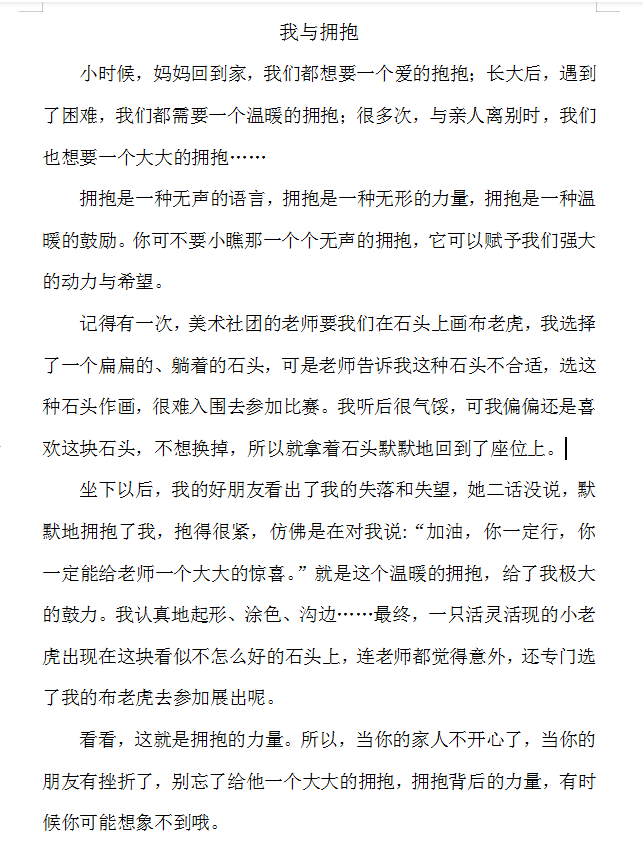 我与拥抱 热386 类别:原创 发表时间:2021-07-28 20:49 已有 387 次阅读 指导老师:王茹 所属学校:金水区四月天小学